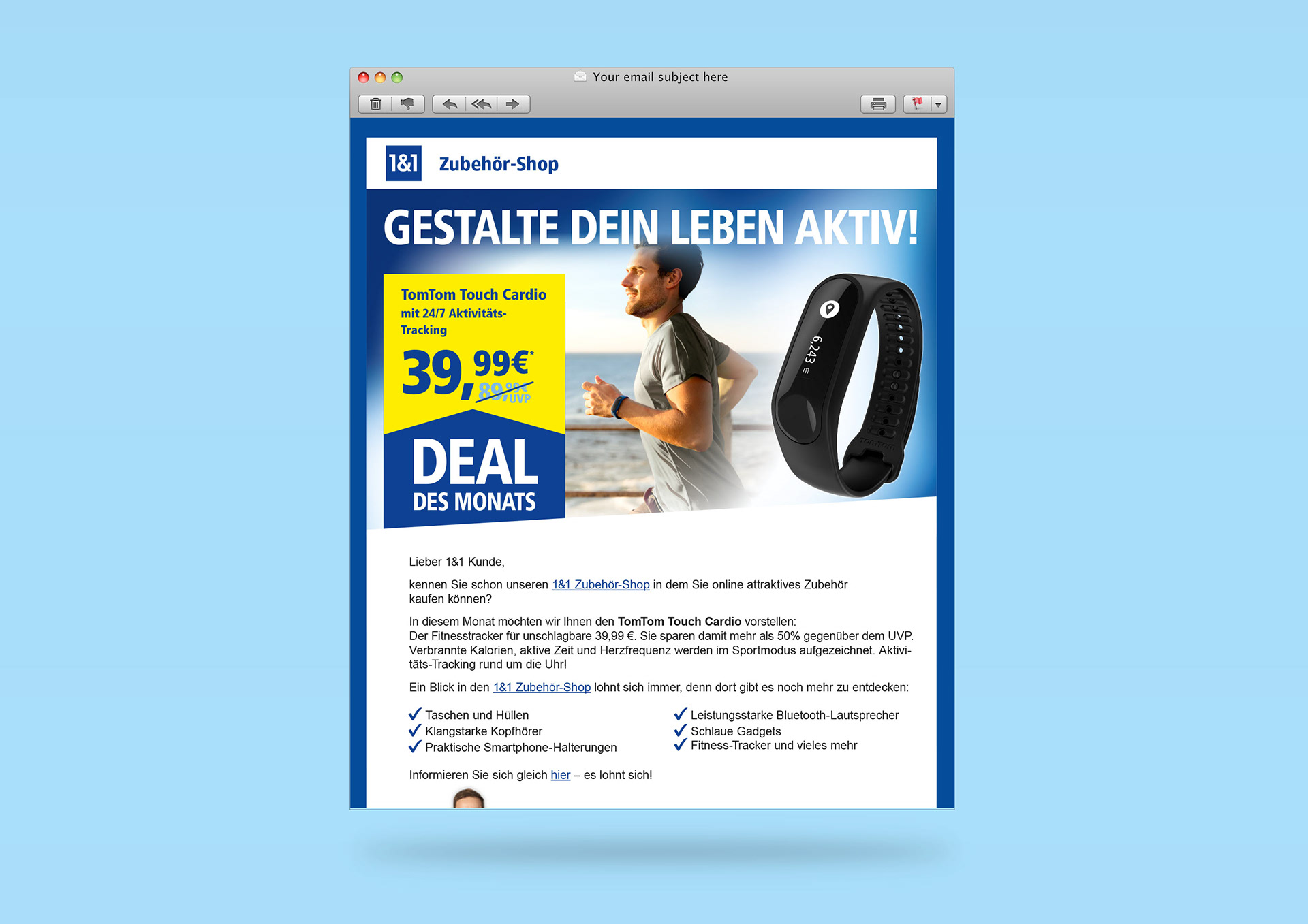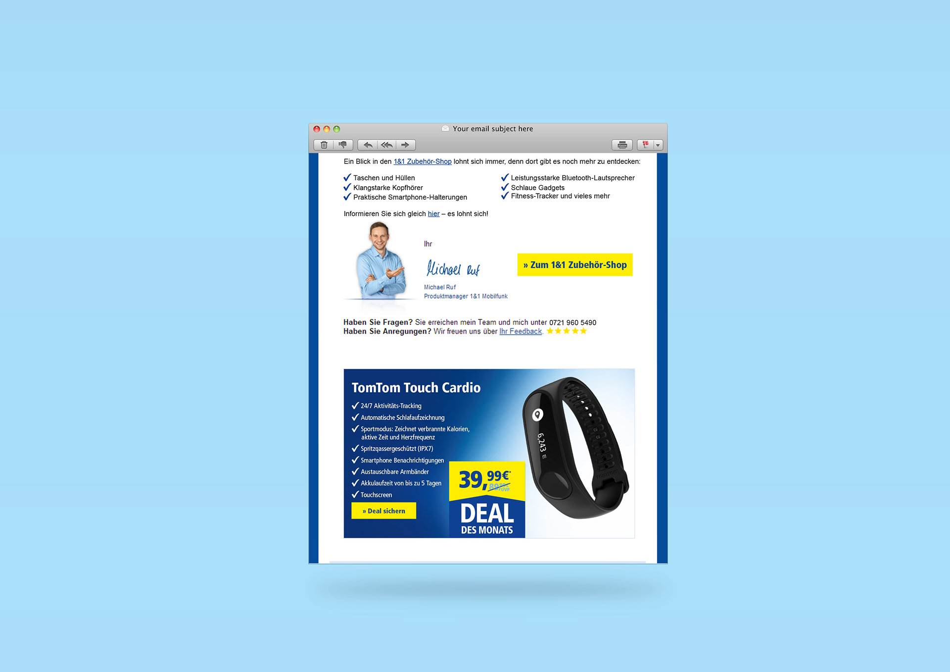 In Zusammenarbeit mit AHA! Effekt Grafik Design sind zahlreiche Arbeiten für 1&1 entstanden